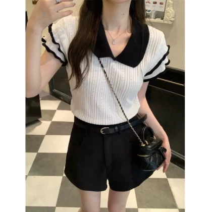 | nameOriginal | kumikumi lapel crochet cropped top sweater |