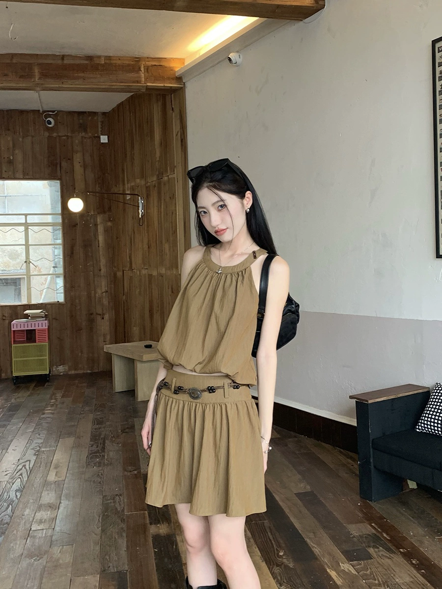 | nameOriginal | kumikumi niche pleated vest A-line skirt halter neck |