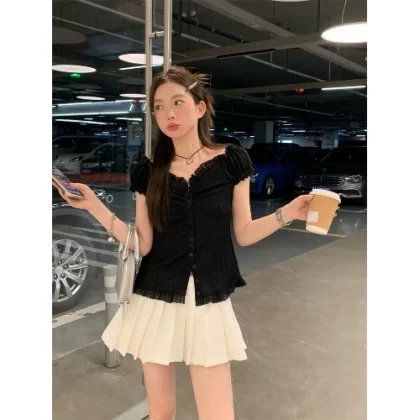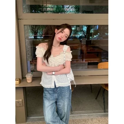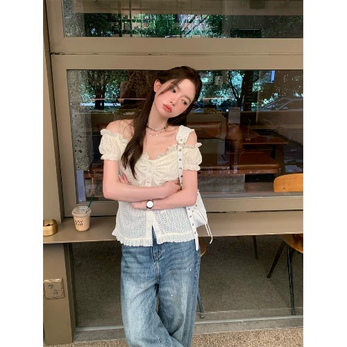 | nameOriginal | Kumikumi one shoulder shirt niche top lace |