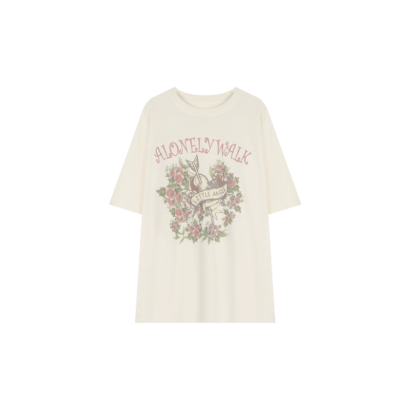 kumikumi تي شيرت بأكمام قصيرة طباعة وردة أوائل الربيع
