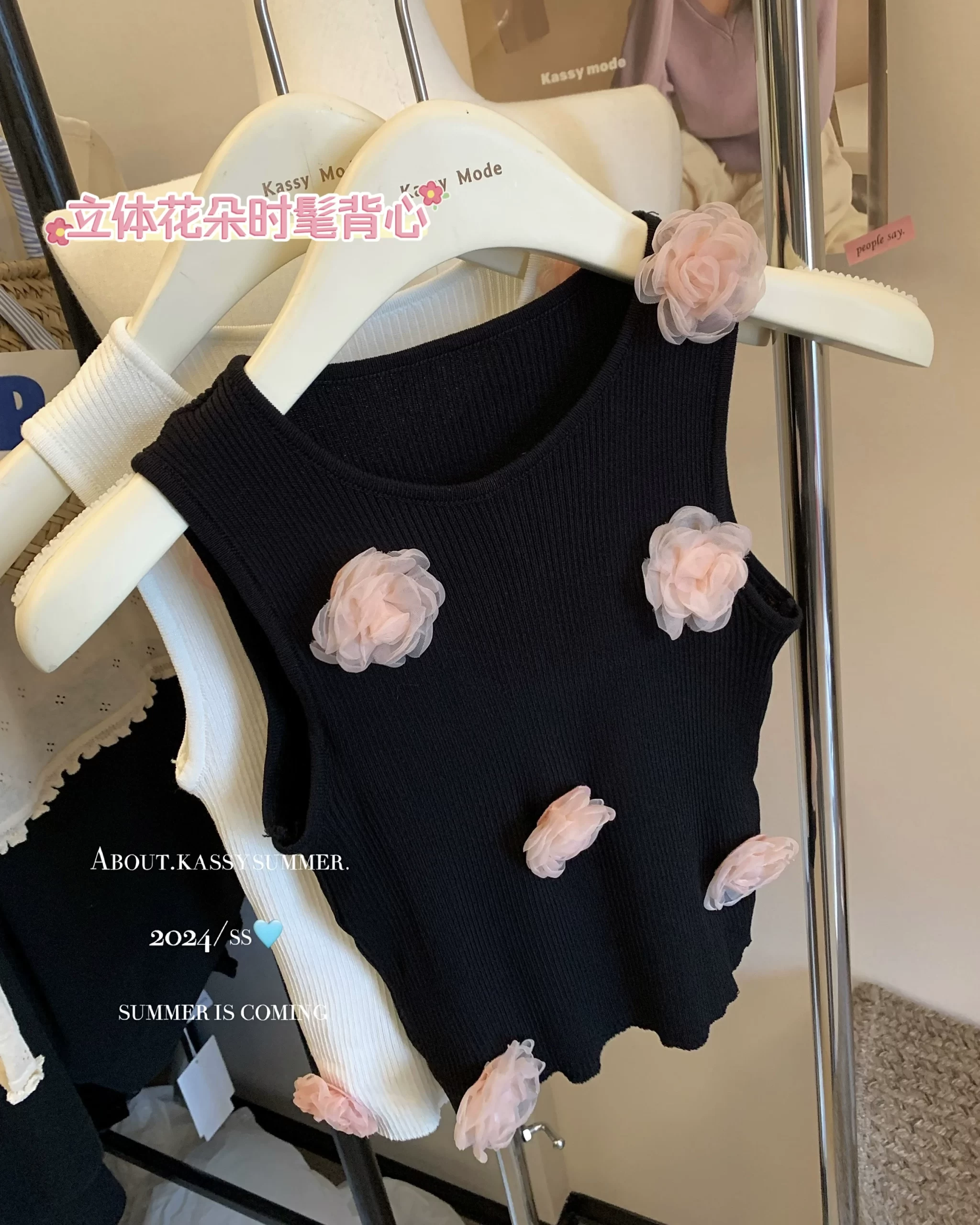kumikumi three-dimensional slim bottoming top with flowers