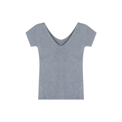 | nameOriginal | kumikumi V-neck right-shoulder short-sleeved sweater |