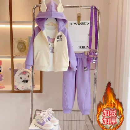 | nameOriginal | Kuromi Girls Suit Spring and Autumn Suit 2024 New Children's Kuromi Children's Clothing Winter Clothes Plus Velvet Three-piece Trendy Set |