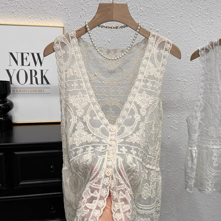 | nameOriginal | Lace Mesh Vest Women's Summer Outer Wear New Arrival Perspective Outer Wear Loose Vest Thin Sleeveless Top Blouse |