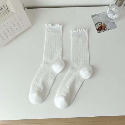 nameOriginal | Lace socks mid-tube spring and summer women's thin breathable mesh miu wind Lolita socks white piled socks |