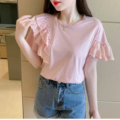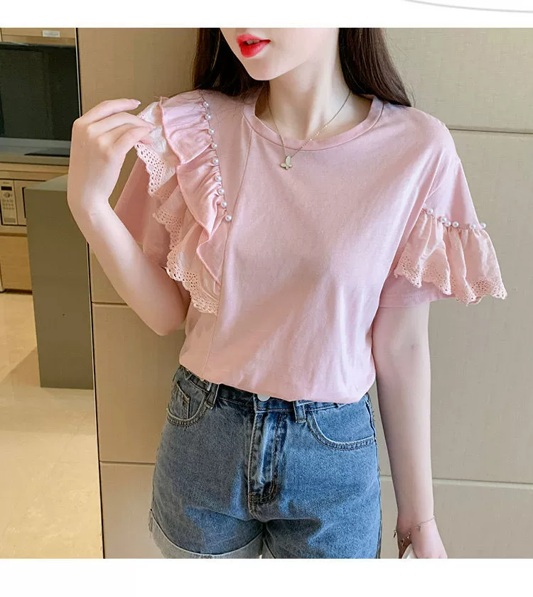 nameOriginal | Lace splicing heavy beading loose short-sleeved T-shirt |