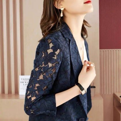 | nameOriginal | Lace Suit Jacket Women's Korean Style 2022 Spring and Summer New Elegant Sunscreen Hollow Blue Thin Women's Small Suit |