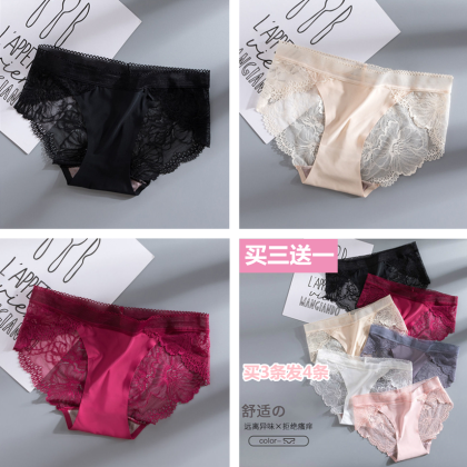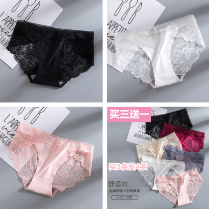 | nameOriginal | [Lace Underwear] New ice silk seamless stitching lace edge hollow sexy breathable cotton crotch underwear for women |