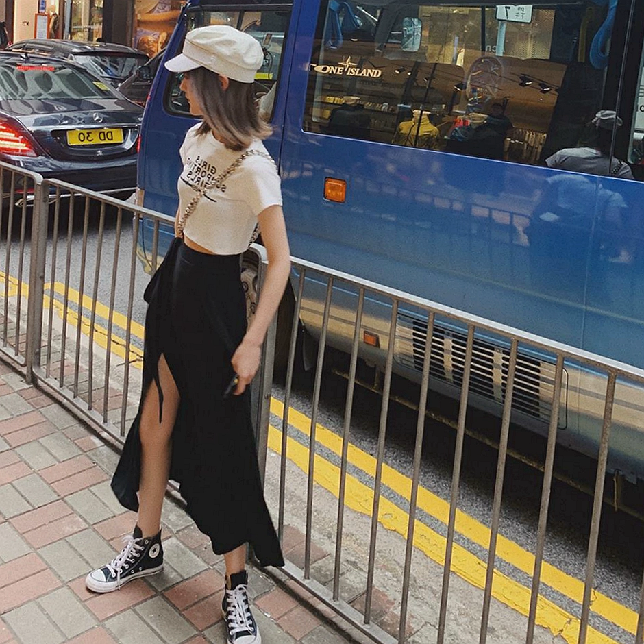 Lace-up high-waisted vintage one-piece skirt with slits