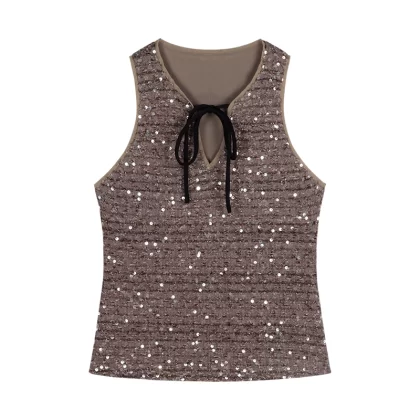 Lace-up sleeveless vest new style slim fit chic sequins