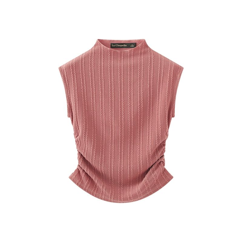 | nameOriginal | LaChapelle half-high collar small flying sleeves slim fit T-shirt women's pleated drawstring twist sleeveless top |