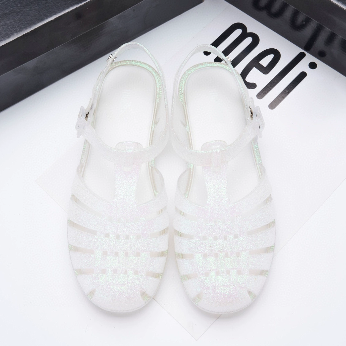 صنادل رومانية أوروبية وأمريكية ذهبية مضفرة من البلاستيك للسيدات