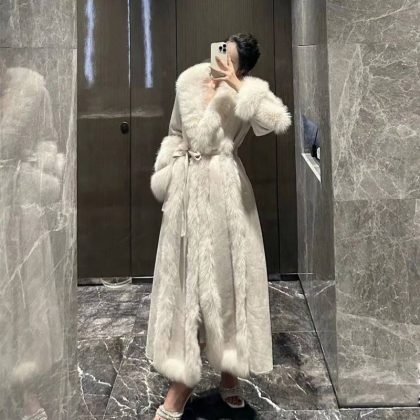 | nameOriginal | Lady's leather coat French elegant white fox fur coat women's fur integrated thickened winter coat |