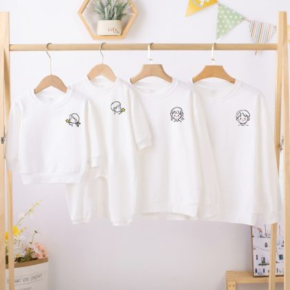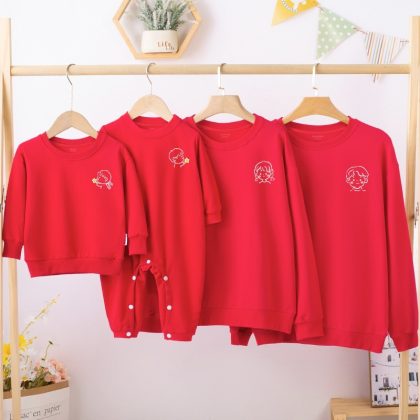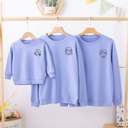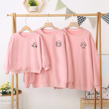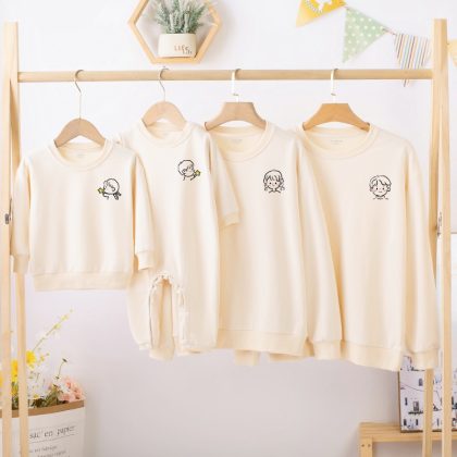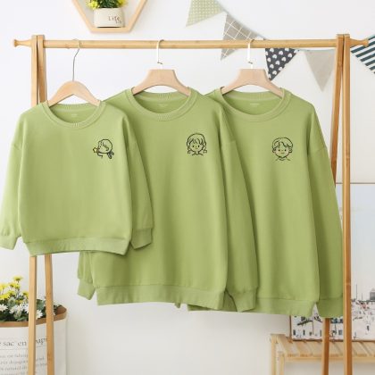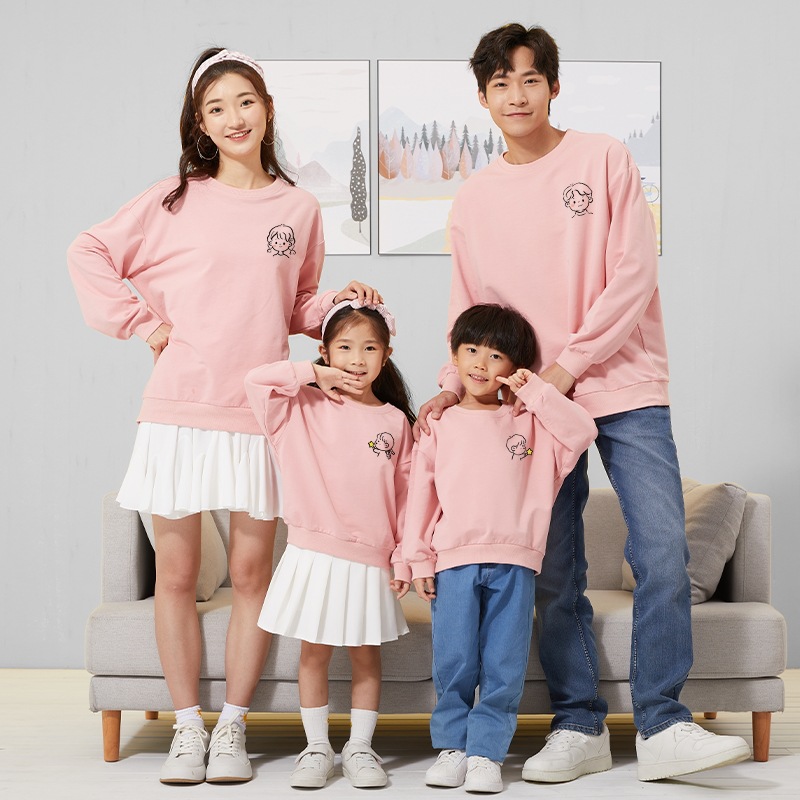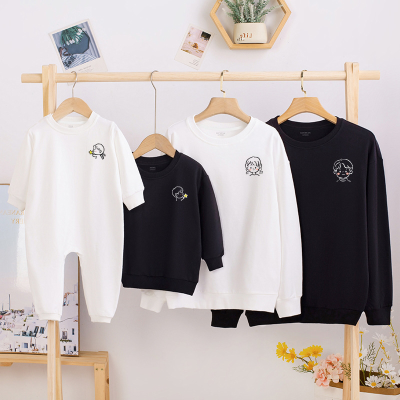 Laimengde simple pen small chest logo parent-child wear round neck sweater fleece-lined long sleeve 0-12 months baby romper