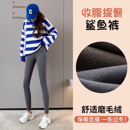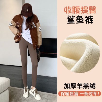 Lamb fleece shark skin leggings women's winter fleece-lined thick non-pilling elastic slim yoga Barbie pants