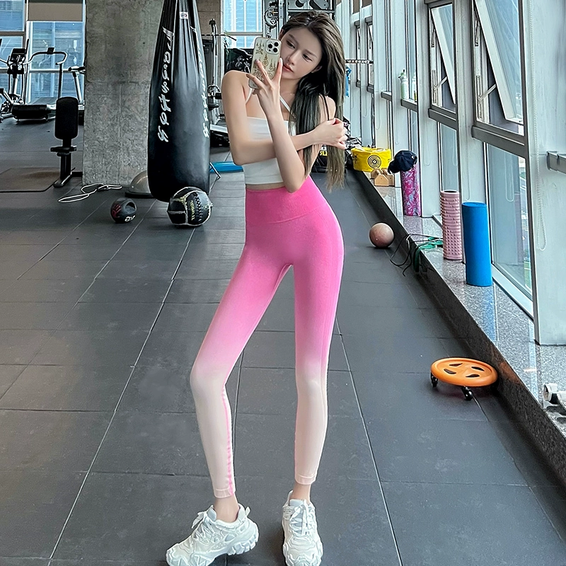 Lan pattern hip lift gradient dopamine high waist sports shorts