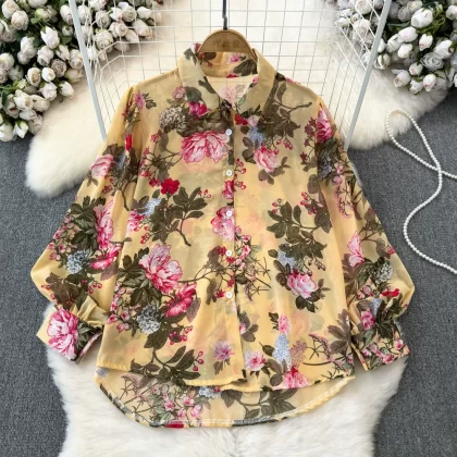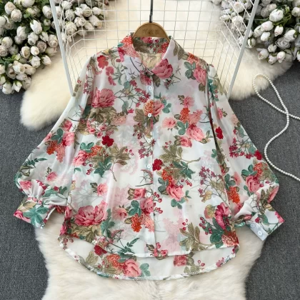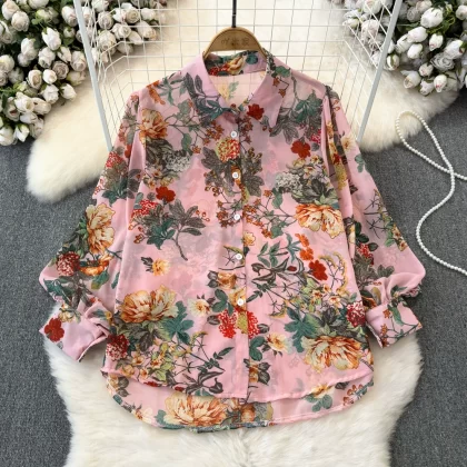 | nameOriginal | Lantern long sleeve loose single breasted casual chiffon shirt |