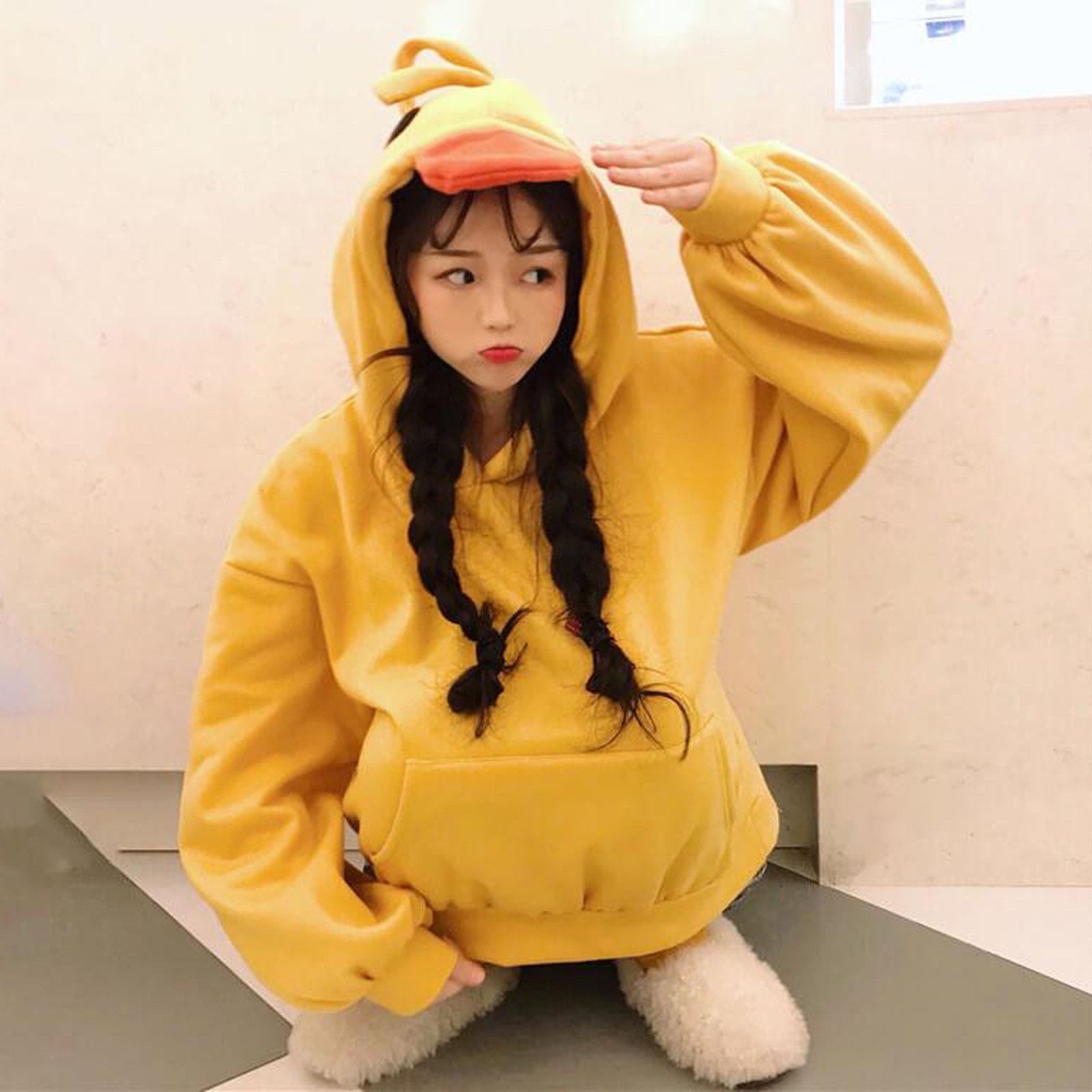 | nameOriginal | Lantern Sleeve Fleece-Lined Duck-Shaped Pullover Hoodie |