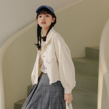 | nameOriginal | Lantern Sleeve Short Denim Jacket Women's Spring 2024 New Style Fresh Style College Style Korean Loose Top Jacket |