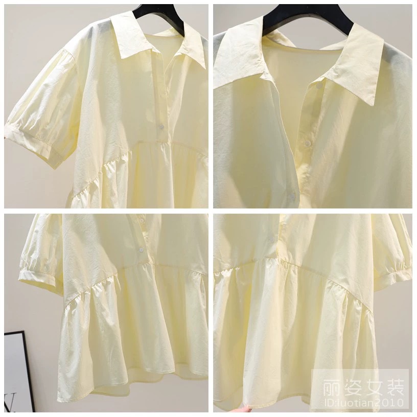 | nameOriginal | Lapel Short-sleeved Cotton Doll Shirt Women's Yellow Shirt 2024 Summer Korean Style Fresh Style Age-reducing All-match Trendy Shirt |
