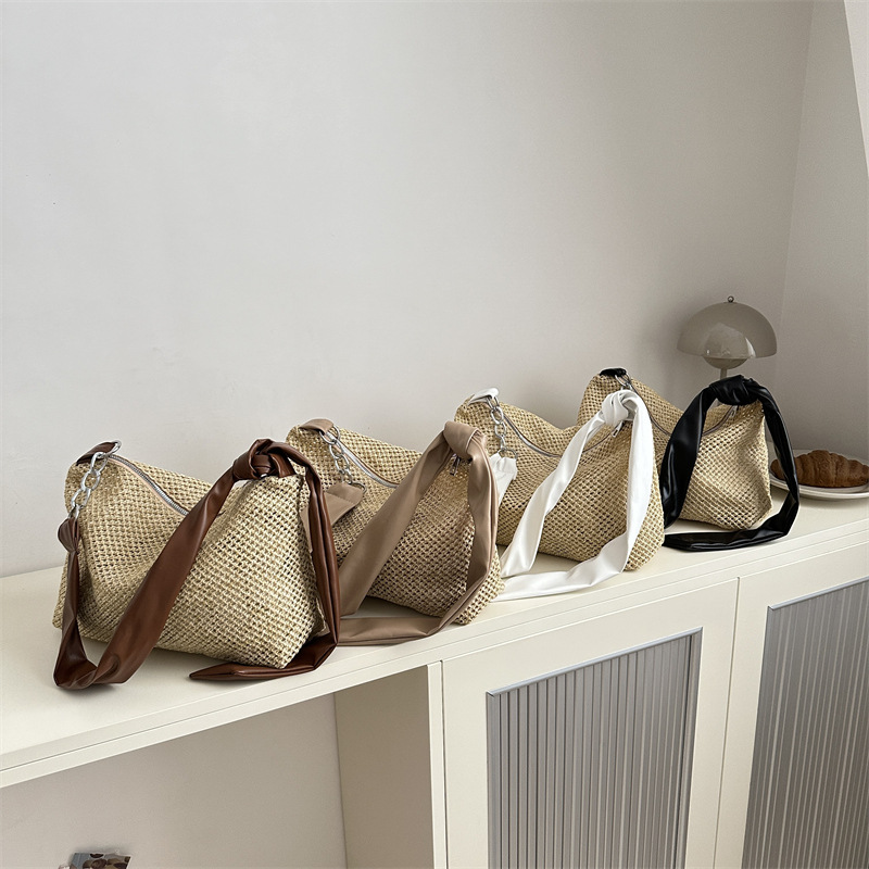 | nameOriginal | Large Capacity Bag Women's Bag 2024 Summer New Fashionable Simple Contrast Color Straw Bucket Bag Handbag Shoulder Bag |