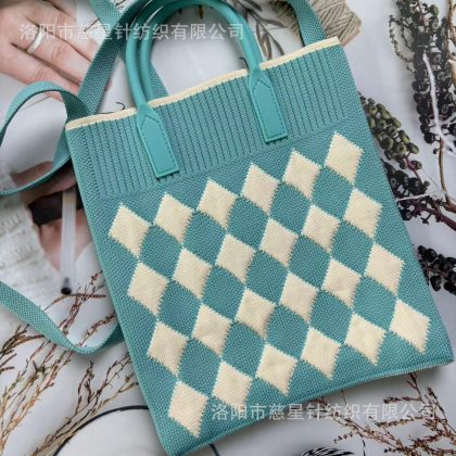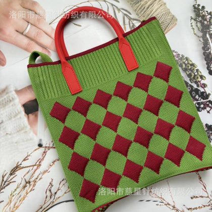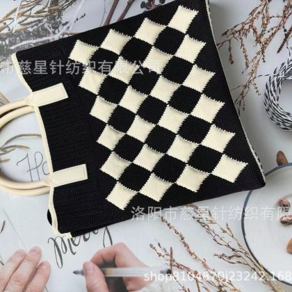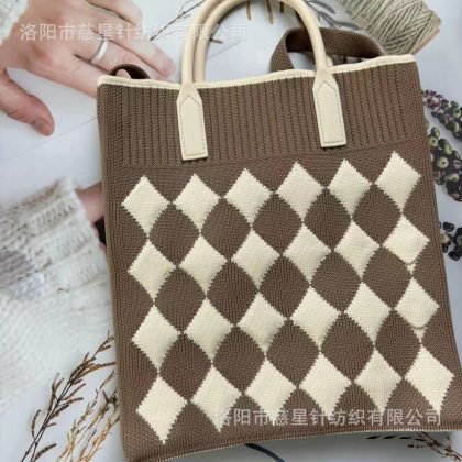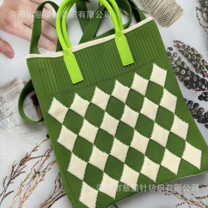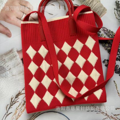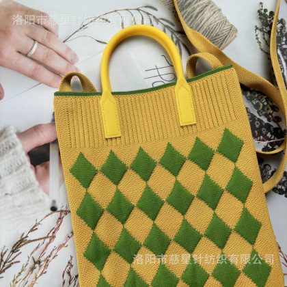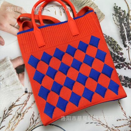 حقيبة يد نسائية محبوكة ذات سعة كبيرة وحقيبة صغيرة لتخزين العمل وحقيبة معصم على الطراز الكوري وحقيبة كتف بألوان متباينة