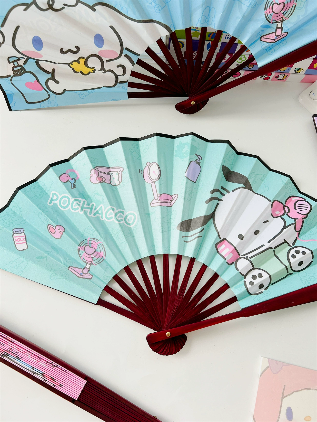 Large Cool Kuromi Cinnamon Dog Silk Folding Fan