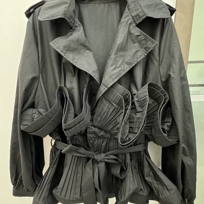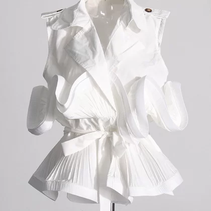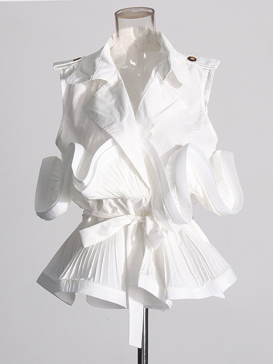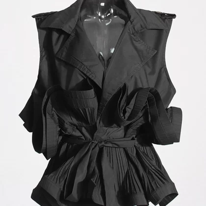 | nameOriginal | Large lapel ruffled lace-up design sleeveless vest |