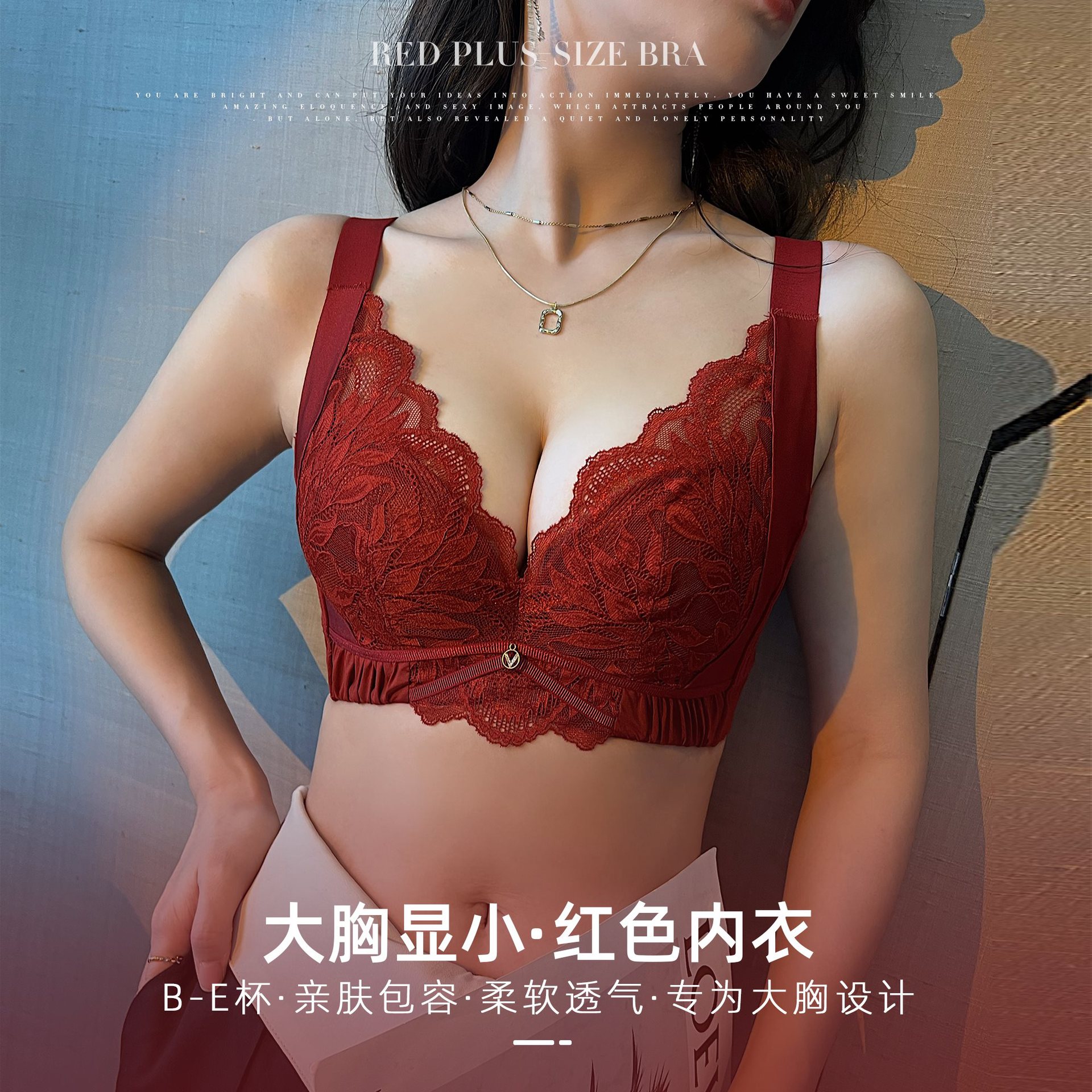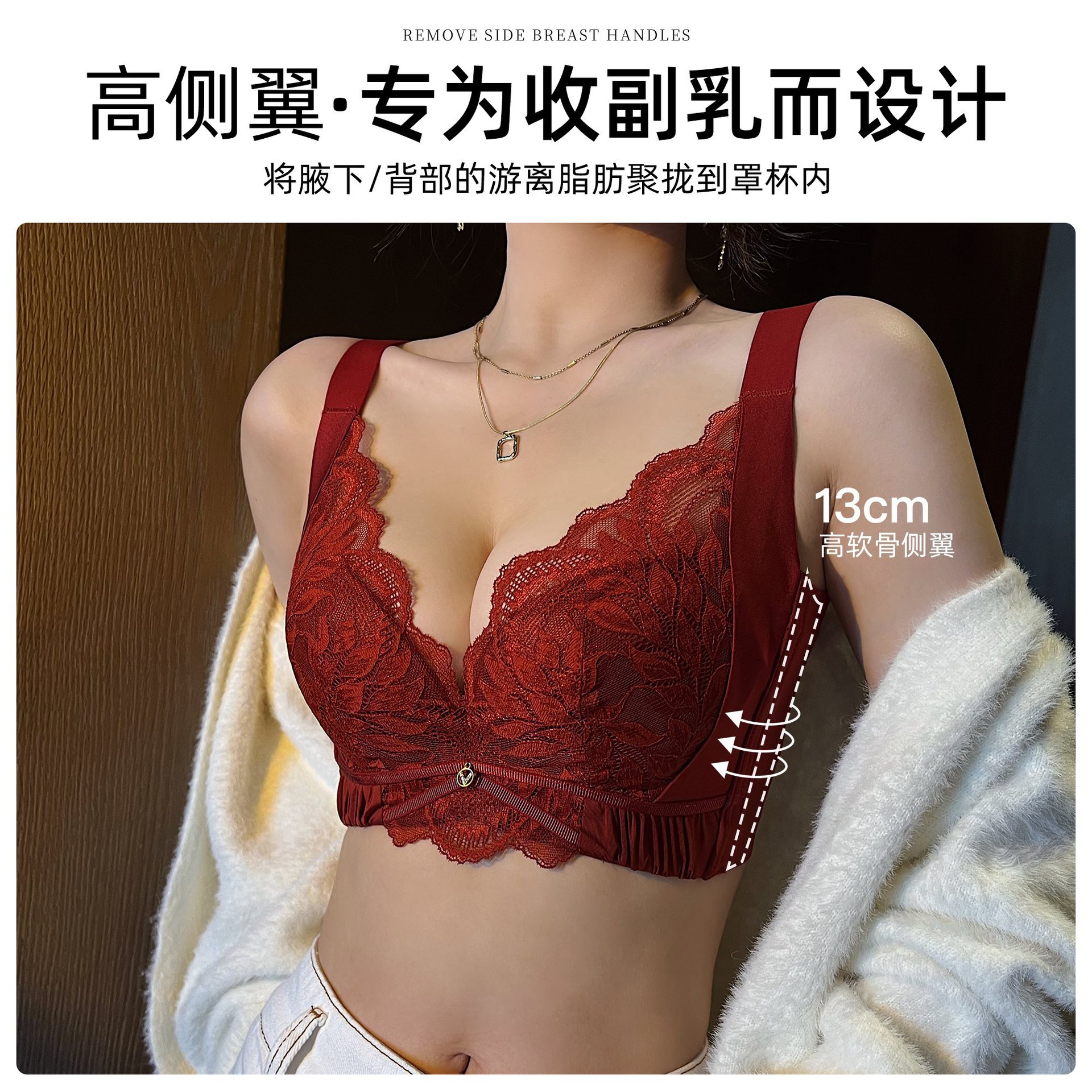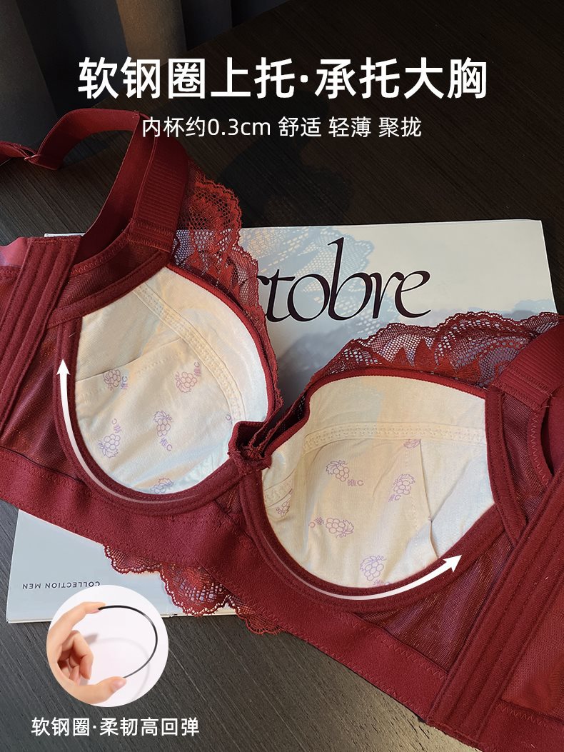 Large Size Bra Thin Adjustable Lace Underwear Women's Large Chest Showing Small Side Breast Soft Steel Ring Anti-sagging Bra