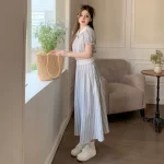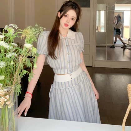 Large size casual striped lapel waist-covering crotch shirt