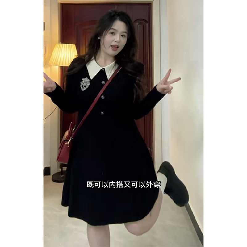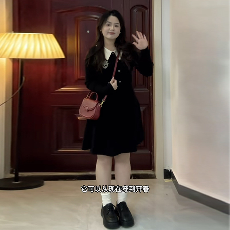 | nameOriginal | Large Size Chubby Girl French Style Hepburn Style Black Dress Women's Spring and Autumn Tight Waist Slimming Elegant Small Black Skirt Short Skirt |