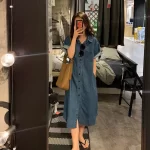 | nameOriginal | Large size denim dress for women summer 2024 retro short-sleeved mid-length temperament casual shirt long skirt summer style |