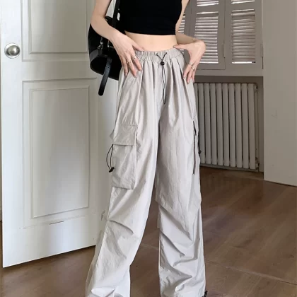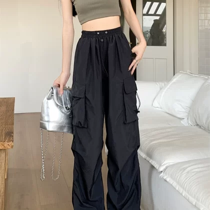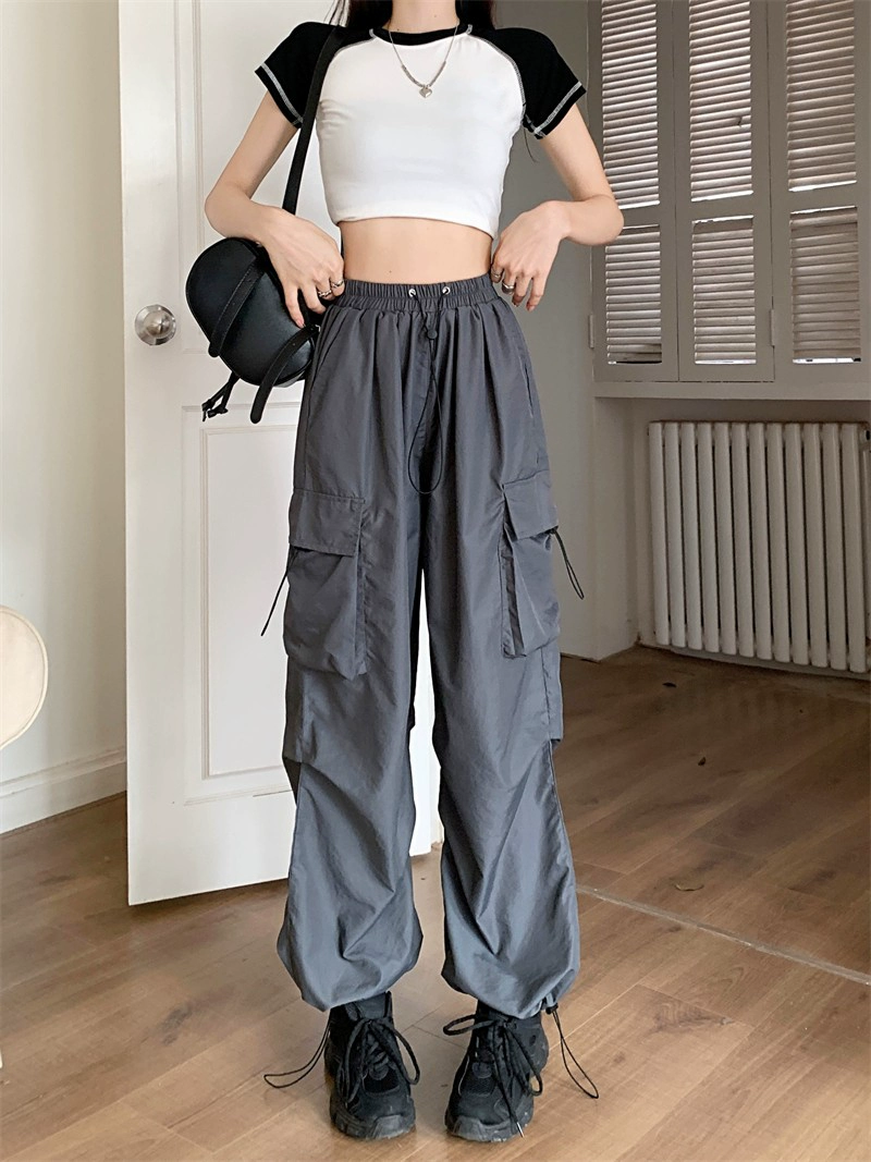 | nameOriginal | Large size elastic waist drawstring American overalls for women 2024 new summer fat mm casual straight high waist wide leg pants |