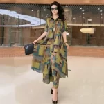 بدلة عصرية واسعة الساق من حرير التوت المطبوع بمقاس كبير