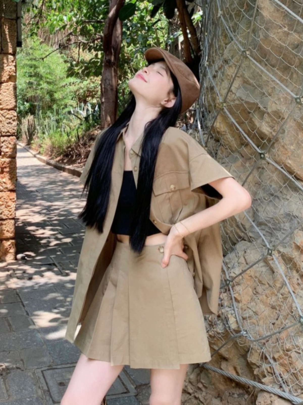 | nameOriginal | Large size short-sleeved shirt for fat girl pleated fashion suit |