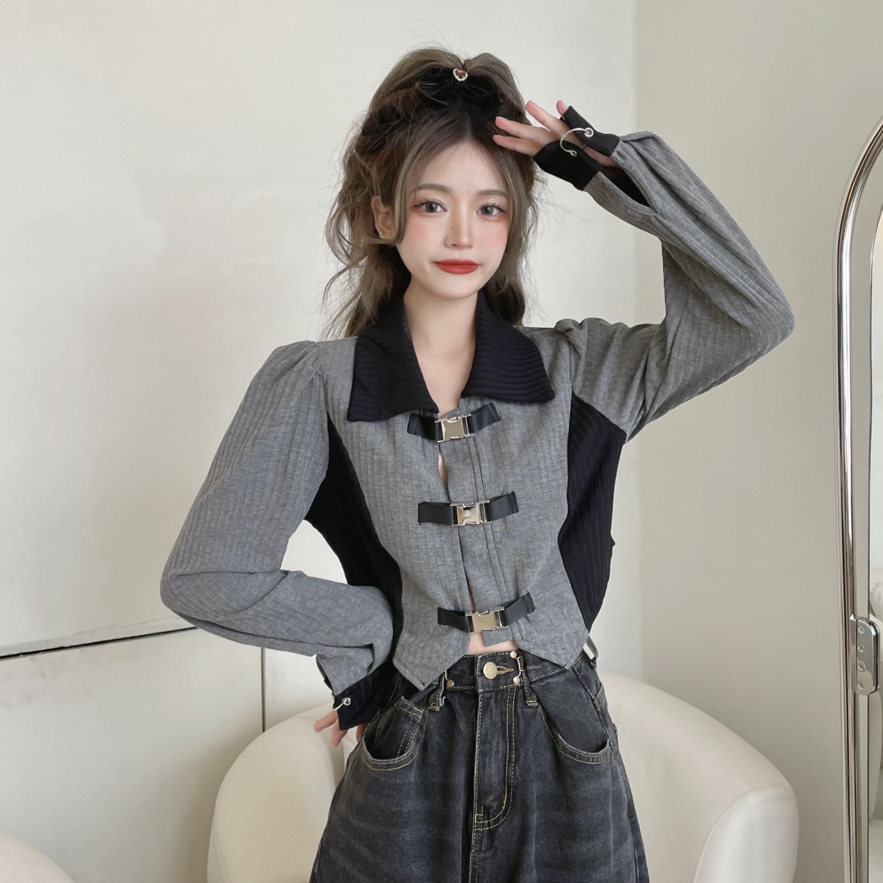 | nameOriginal | Large Size Spring New Style Chubby Sister Design Sense Niche Irregular Long Sleeve Coat Women's Slimming Belly Covering Top Hide Meat |