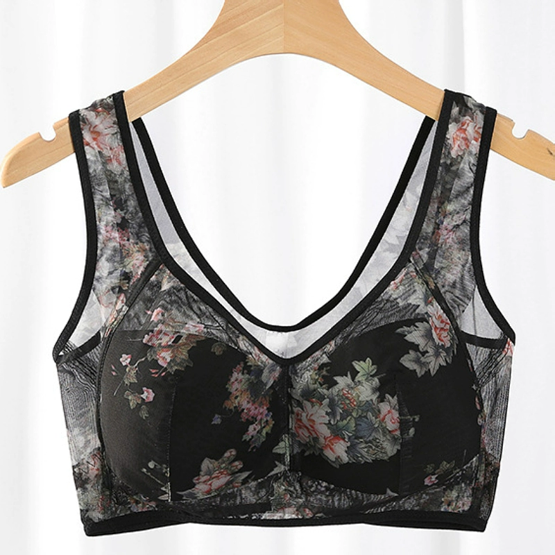 | nameOriginal | Large Size Wireless Bra Shaped Cup Mesh Thin Underwear Wide Shoulder Strap Vest Style Fat M Printed Bra |