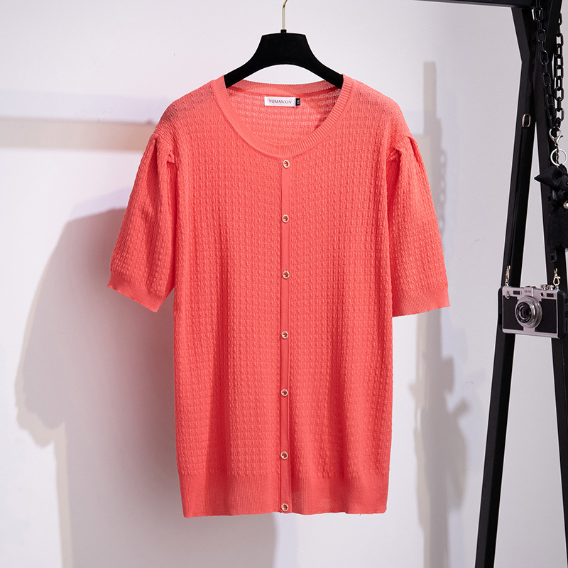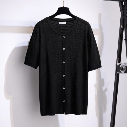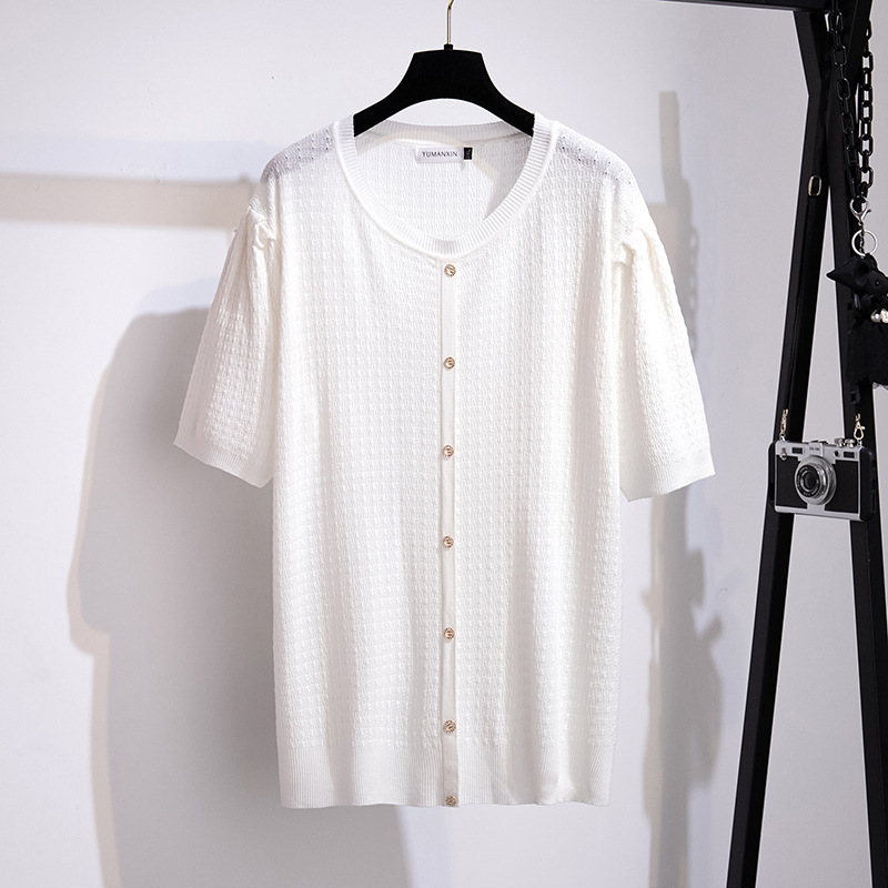 | nameOriginal | Large size women's summer ice silk small fragrant wind knitted jacket fat MM slim 200/300kg short sleeve T-shirt 8865 |