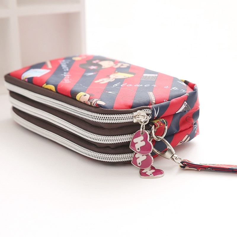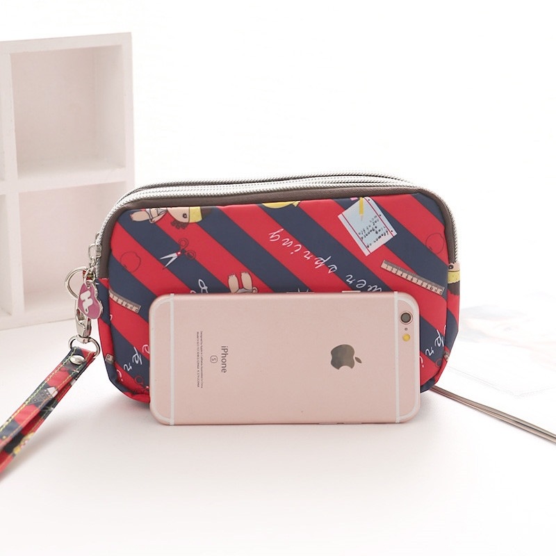 Large Waterproof Three-layer Zipper 6-inch Mobile Phone Bag Coin Purse Mobile Phone Bag Wrist Bag Handbag Women's Bag Cloth Handbag