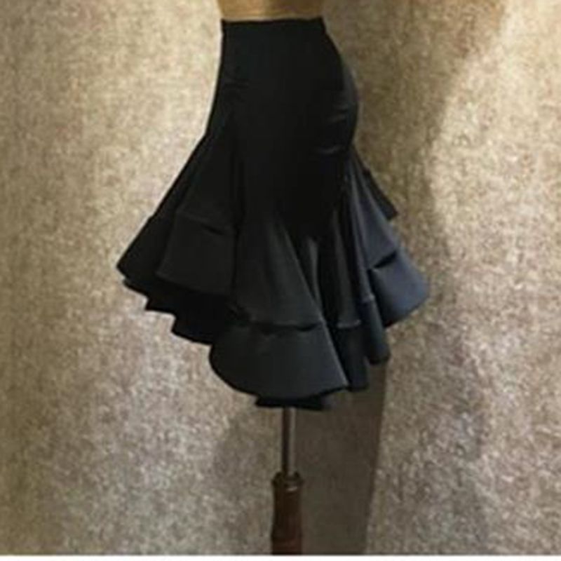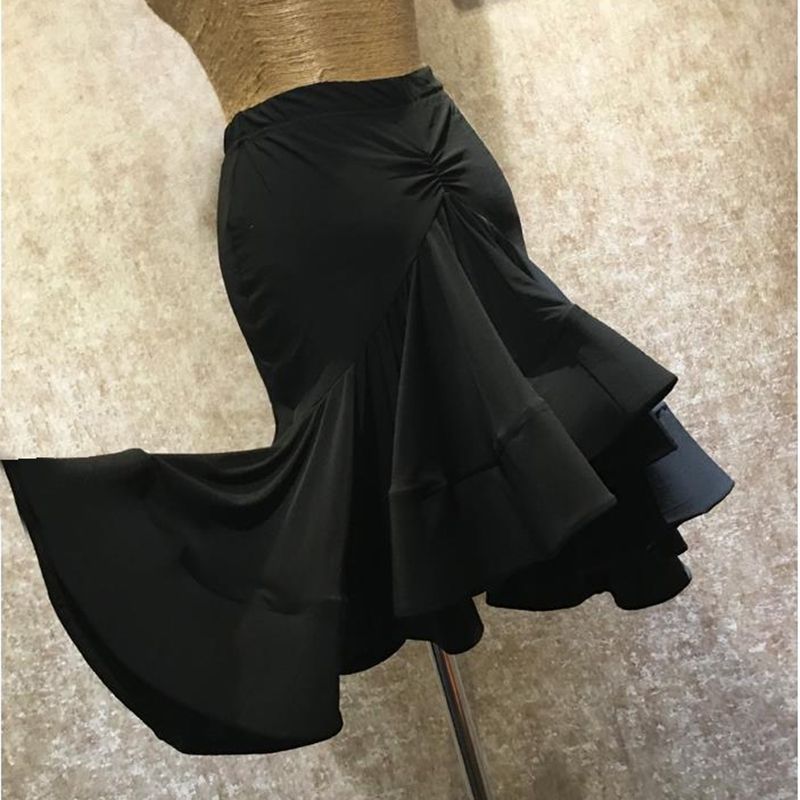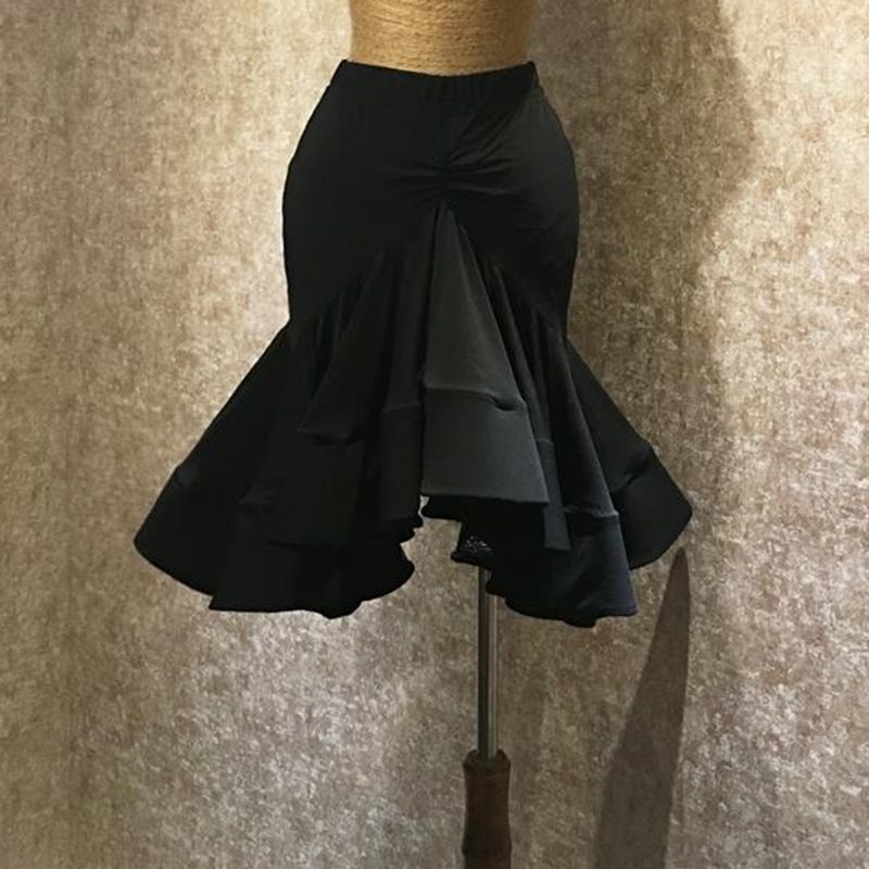 زي الرقص اللاتيني تنورة هيكل السمكة للبالغين للنساء، حقيبة الورك المائلة، زي اختبار الأداء، تنورة رومبا