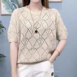 | nameOriginal | Lazada Hot Selling Short-sleeved Rhombic Hollow Knitted Shirt Mother's Loose Casual Interior Summer plus size Women's Wear |