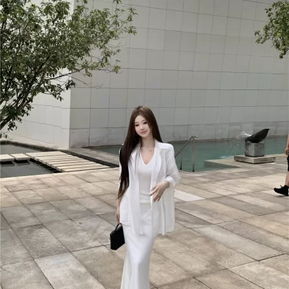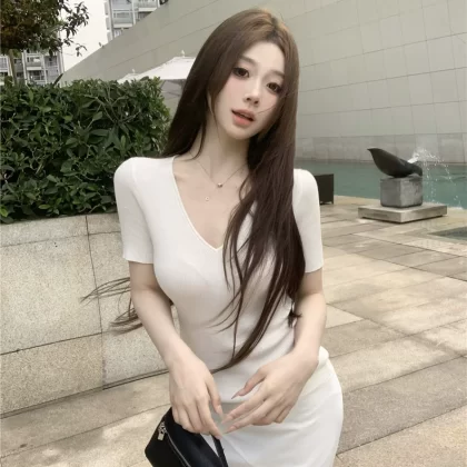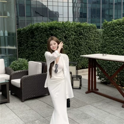 | nameOriginal | Lazy and relaxed white knitted hip-hugging long-sleeved shirt |