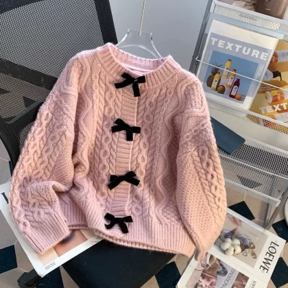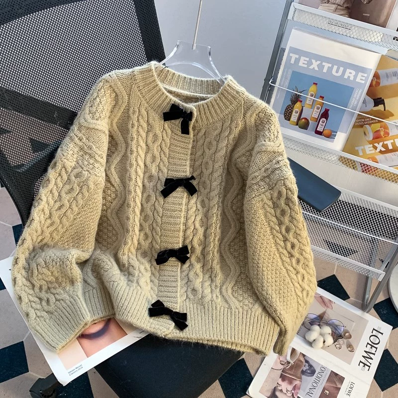 | nameOriginal | Lazy and super nice coat with loose knitted bow |