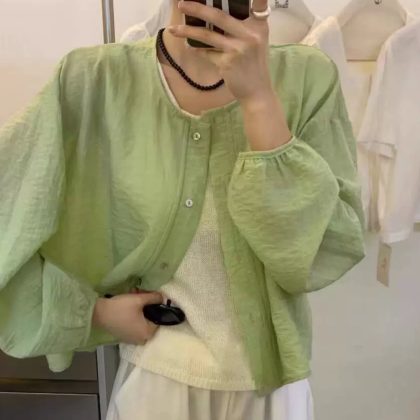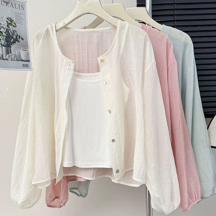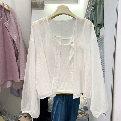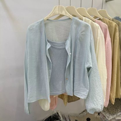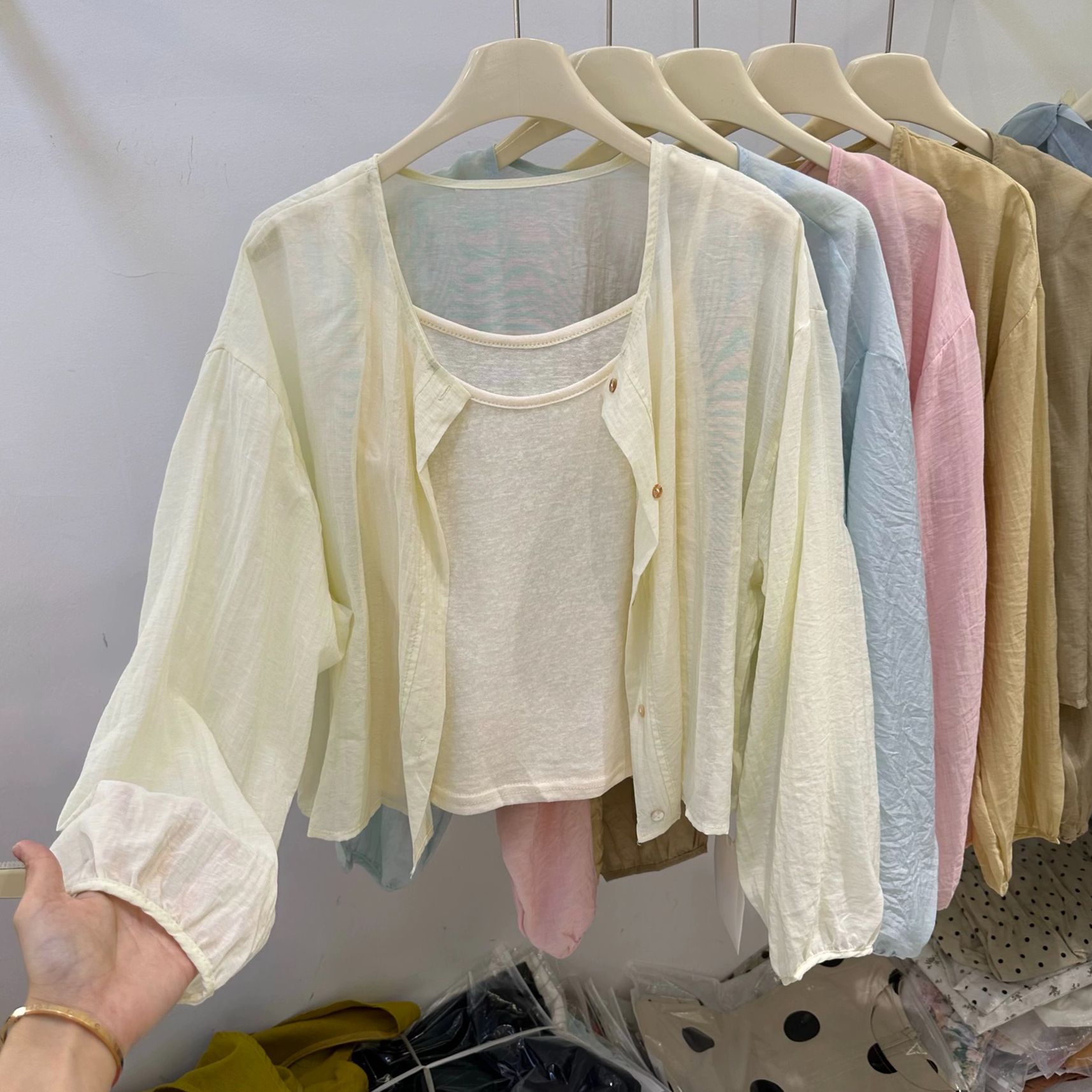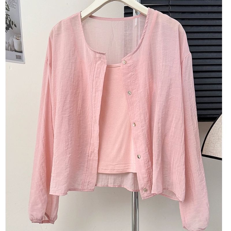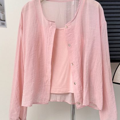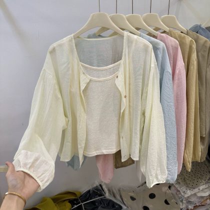 | nameOriginal | Lazy Casual Crewneck Sunscreen Shirt Cardigan suit Women's Summer Camisole Casual Air Conditioning Two-piece Set |