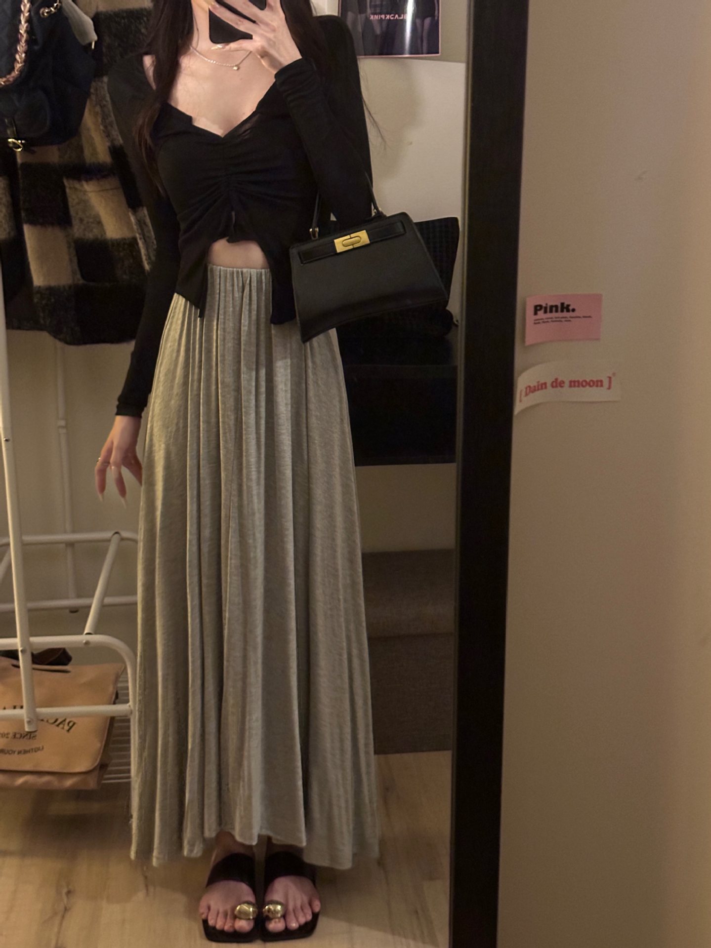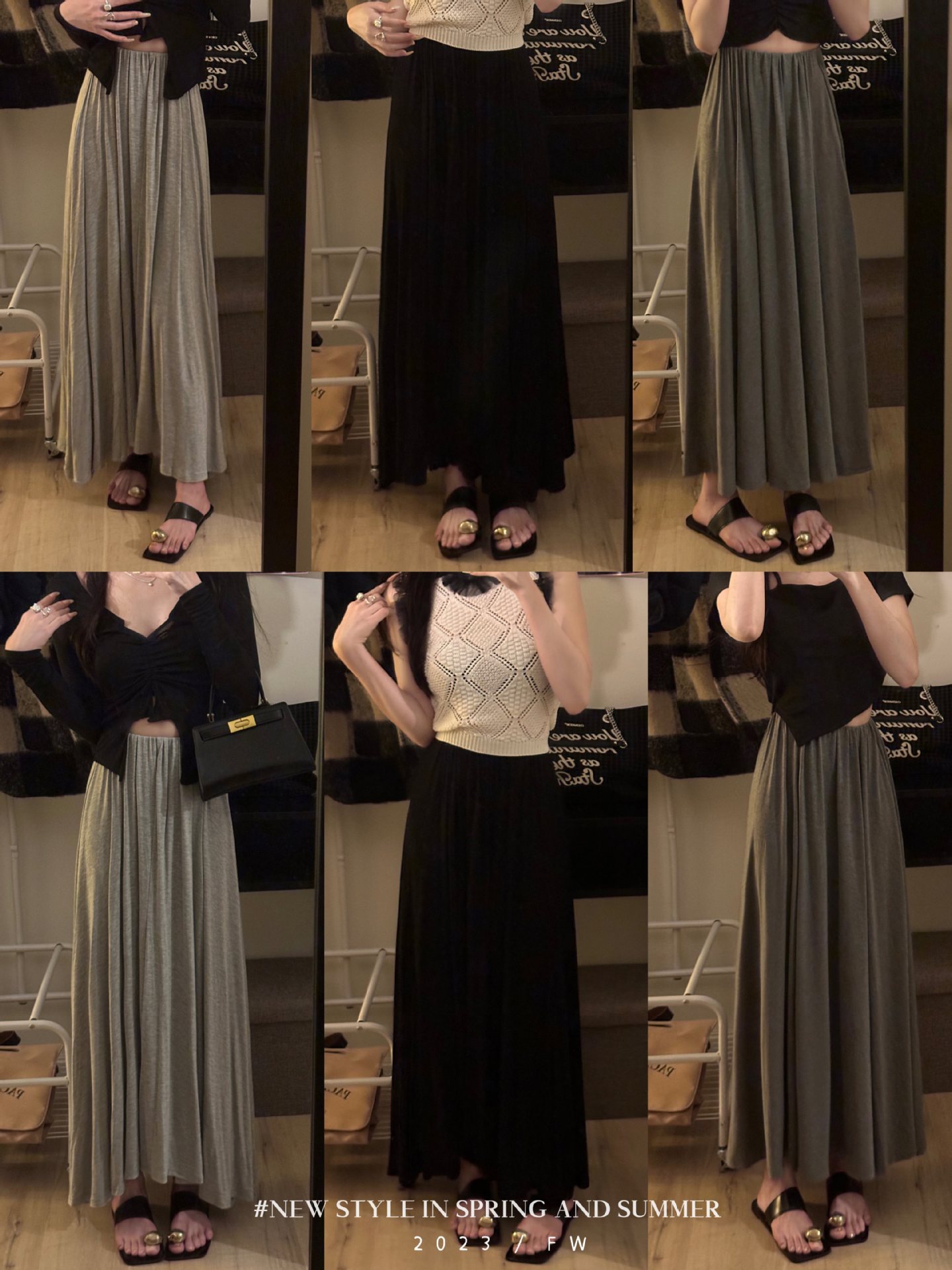 Lazy Draped Skirt Women's Summer 2024 New Grey High Waist Skirt Large Swing Skirt A- Shaped Mid-Length Skirt