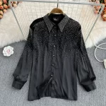 Lazy, loose and slim single-breasted chic long-sleeved rhinestones
