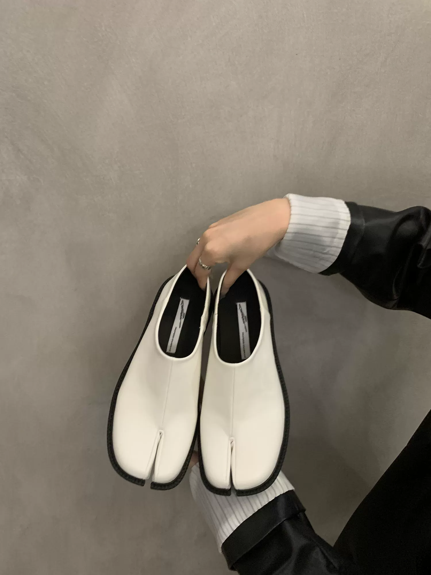 | nameOriginal | Lazy retro pig's trotter silver slip-on split-toe shoes |