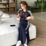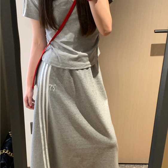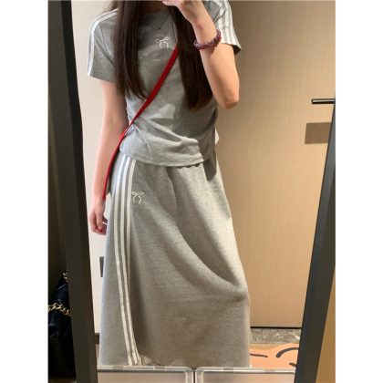 | nameOriginal | Lazy Style Casual suit Women's Three-Bar Short-Sleeved T-Shirt Summer High Waist A- Line Skirt Sports Style Two-Piece Skirt |