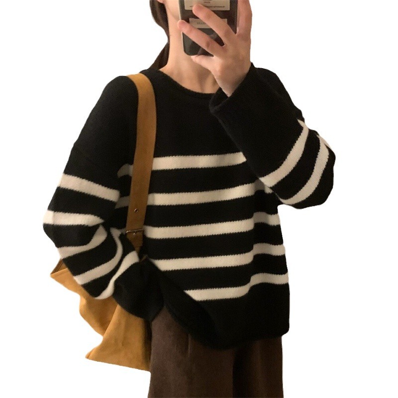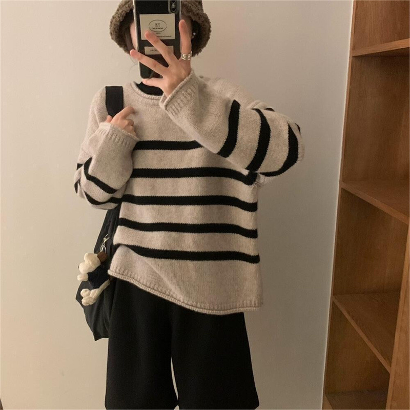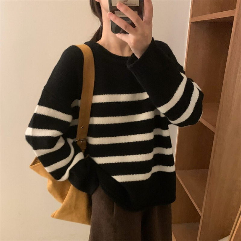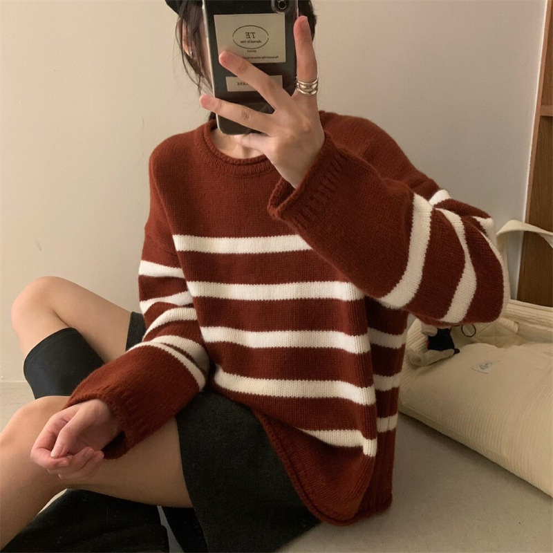 | nameOriginal | Lazy style contrast color striped loose knitted sweater for women autumn and winter New Korean style versatile pullover women's knitted sweater |