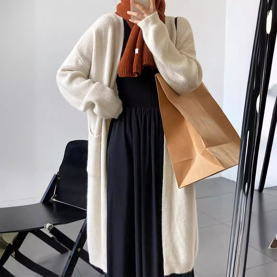 Lazy Style Mid-length Sweater Coat Women's Autumn and Winter New Korean Style High-end Loose Soft Waxy Over-the-knee Knitted Cardigan